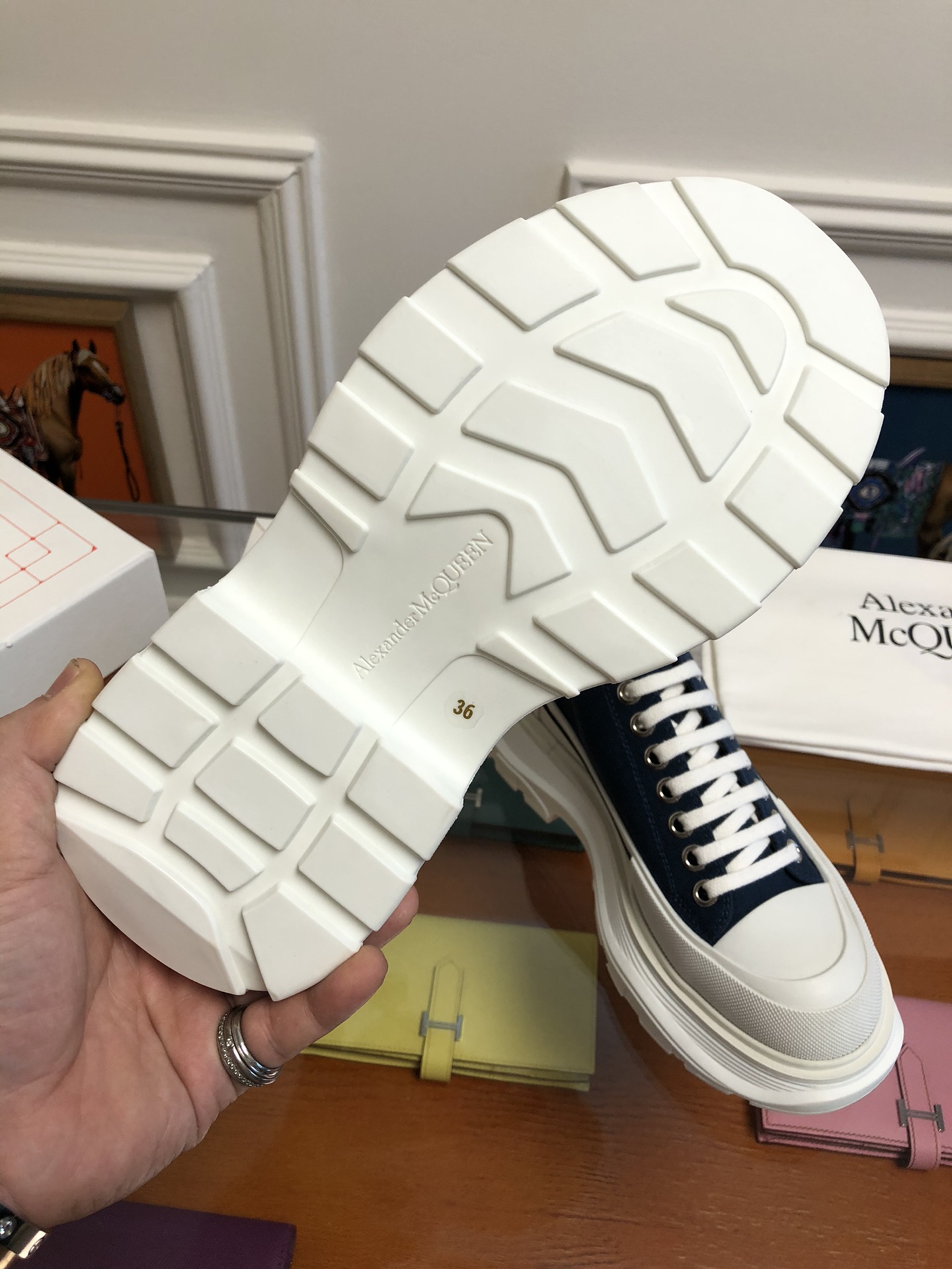 Alxndr McQN Tread Slick Lace Up Boot Black White